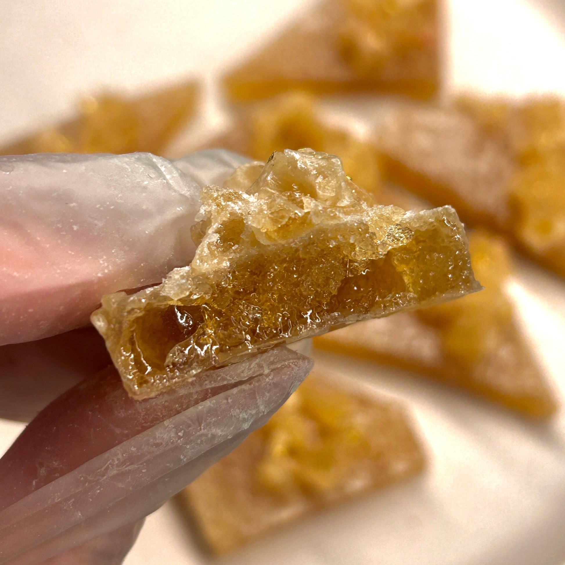 Comes with our 2 pieces peach ice tea flavoured edible crystal candy (or get it make-your-own box) comes in a bag of individually wrapped. Our candies are vegan and gluten free!
